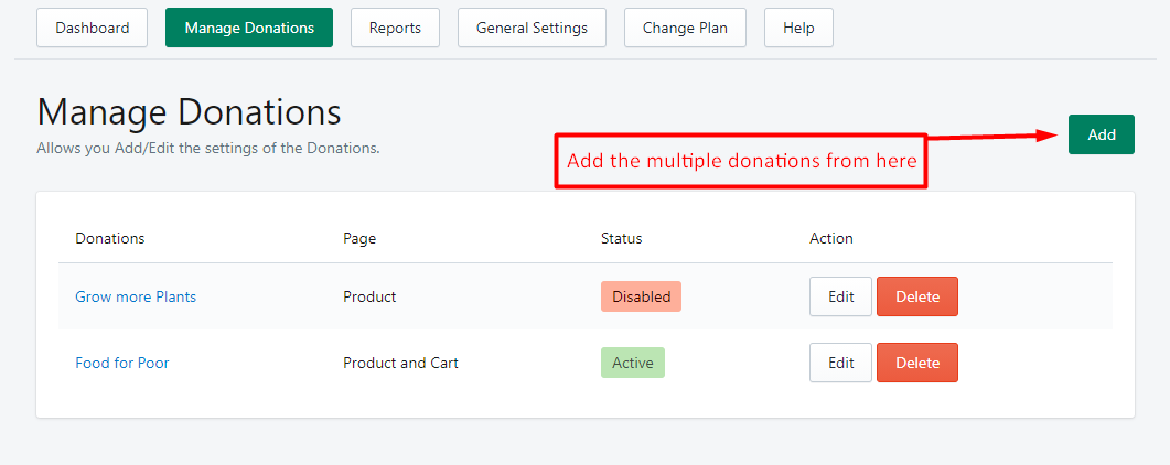 If you want to add the multiple donations on the store then you have to upgrade the plan to **Pro.** Once you upgrade the plan then you will able to add the multiple donations from app settings under donations menu.